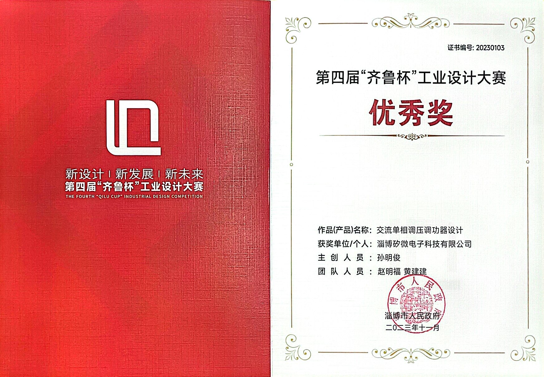 在12月份舉辦的第四屆“齊魯杯”工業設計大賽中,我司獲得“優 秀獎”獎項。